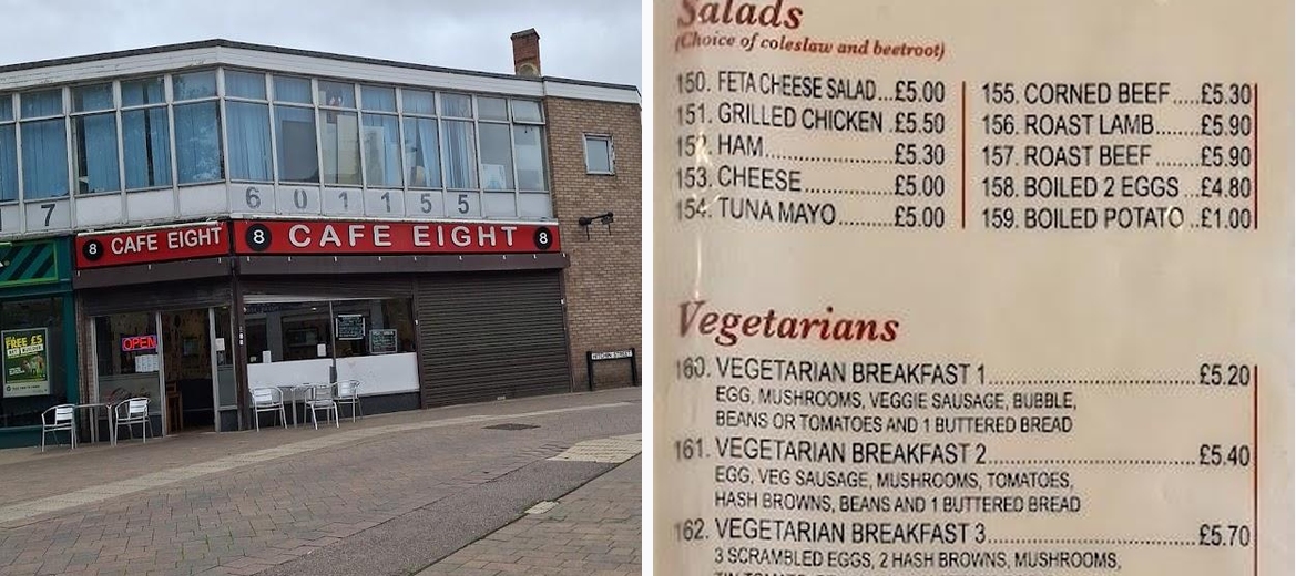 The prices at Cafe Eight range from £1 to £10, making it an affordable spot for a meal or coffee.